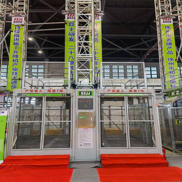 產品主要由底籠(外籠),吊籠,導軌架(標準節),附墻架,傳動機構,安全防墜裝置,安全控制系統,電纜系統,對重系統,吊桿等部分組成。有單籠和雙籠的施工升降機,單籠的施工升降機如增加一個吊籠和其它零件后即可成為雙籠升降機。如果升降機無對重裝置且在電機功率不變的情況下,配備對重裝置,它的載重量能提高與對重相當的重量。
